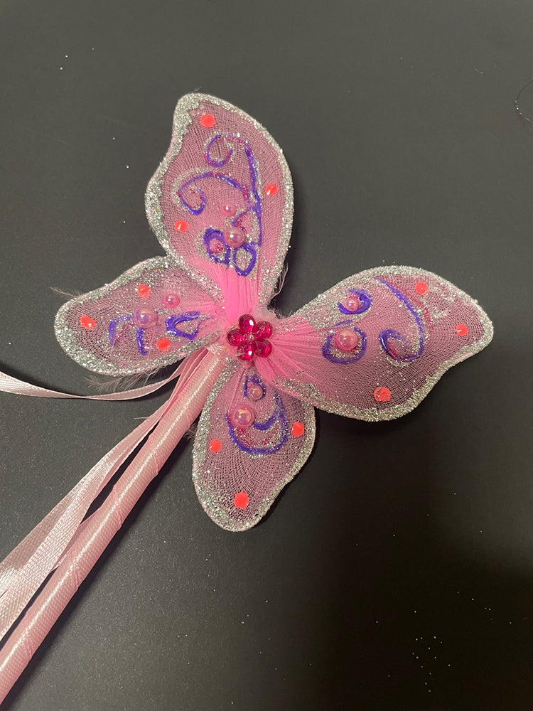 Designed By Sarah - Bespoke Personalised Hand Decorated Pink Fairy Wings with LED lights and wand