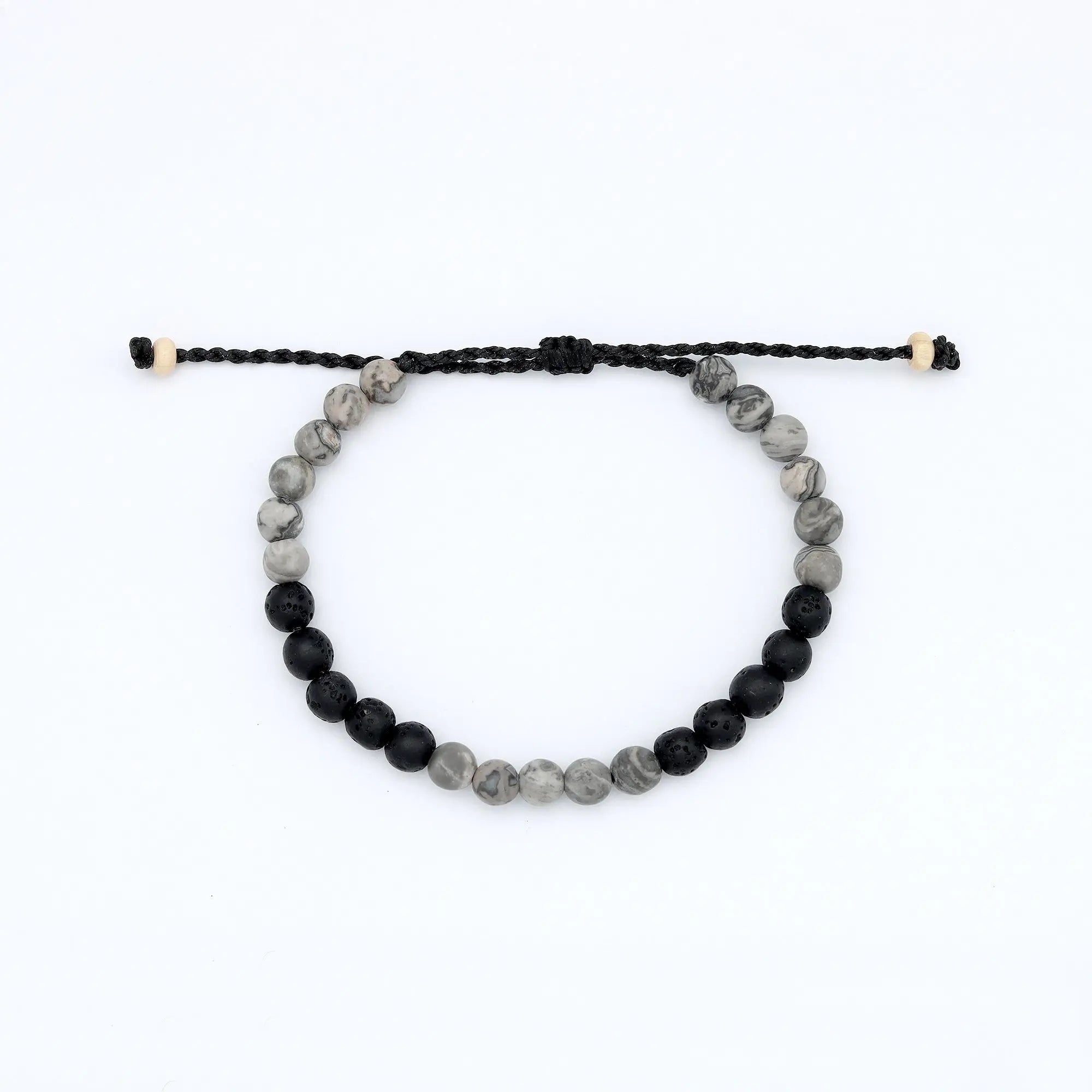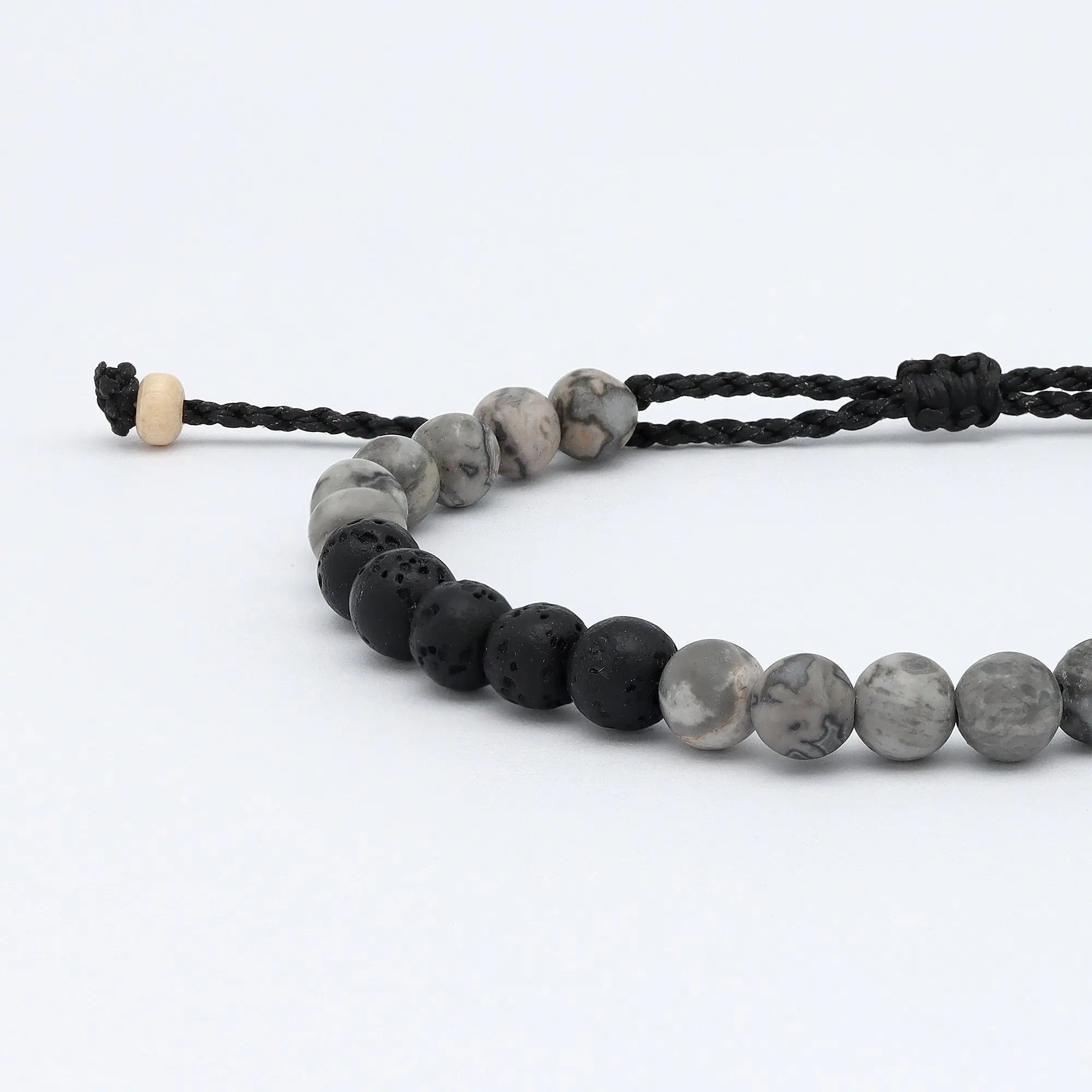 Inspired by the dramatic beauty of Bali’s Sekumpul Waterfall, this beaded mens bracelet reflects the way water cascades over dark volcanic rock. A mix of smoky grey, black, and deep charcoal natural stone beads come together to mirror the misty, powerful flow of the falls.