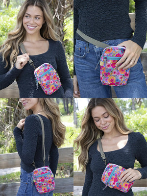 - 5.5in W x 8in L, adjustable strap 24-49in L