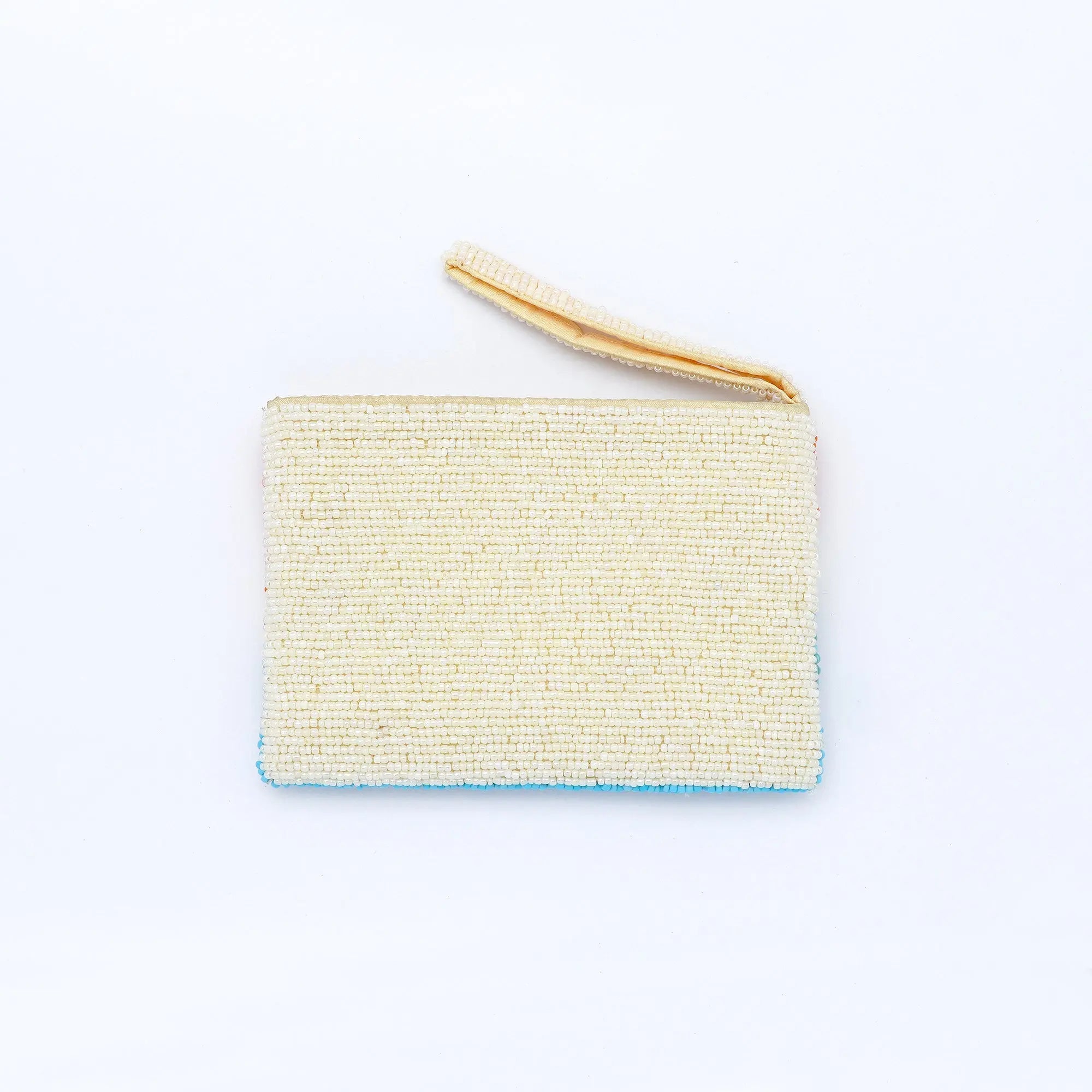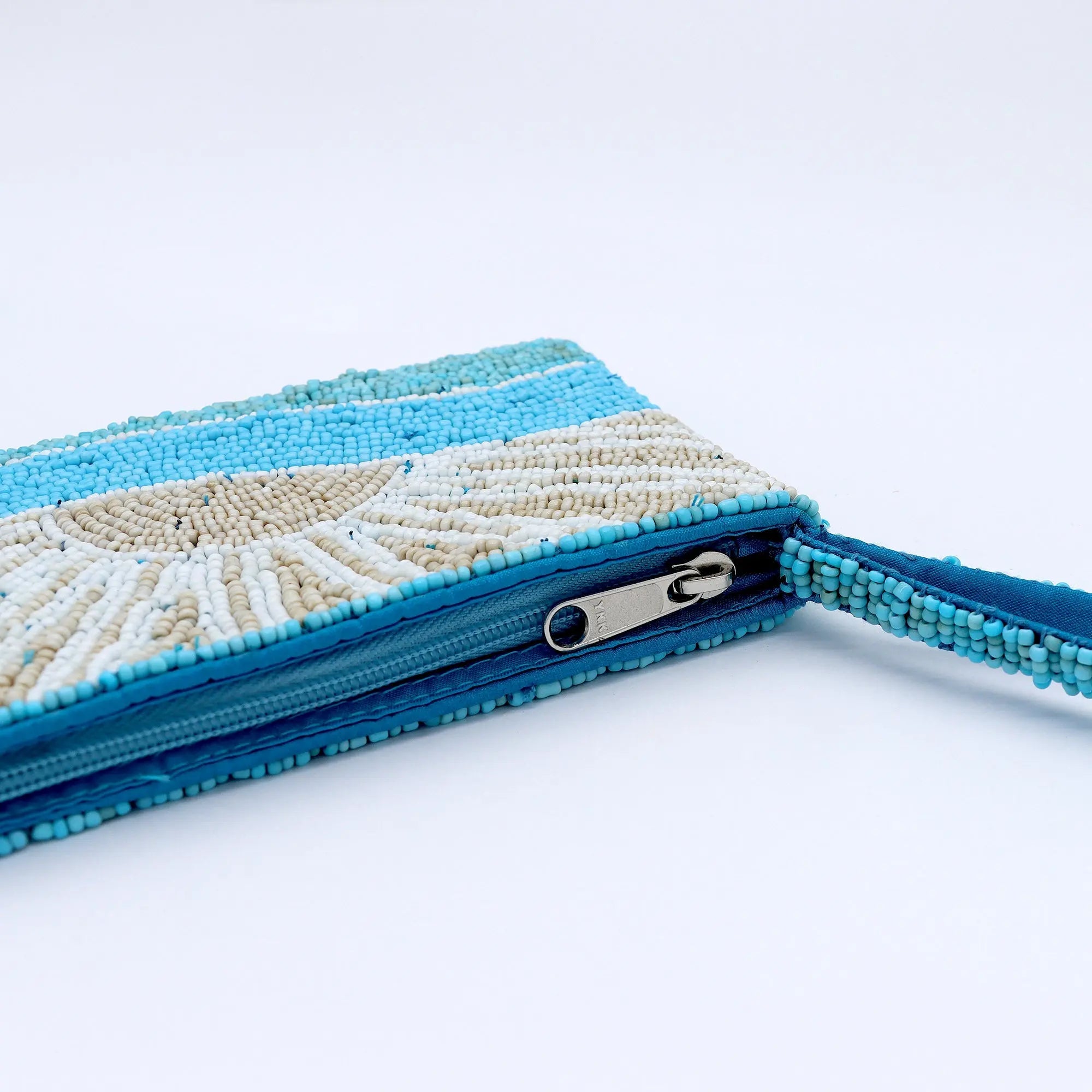 - Made with dainty glass seed beads hand-sewn onto nylon material, fully lined with more nylon, finished with a durable YKK zipper.