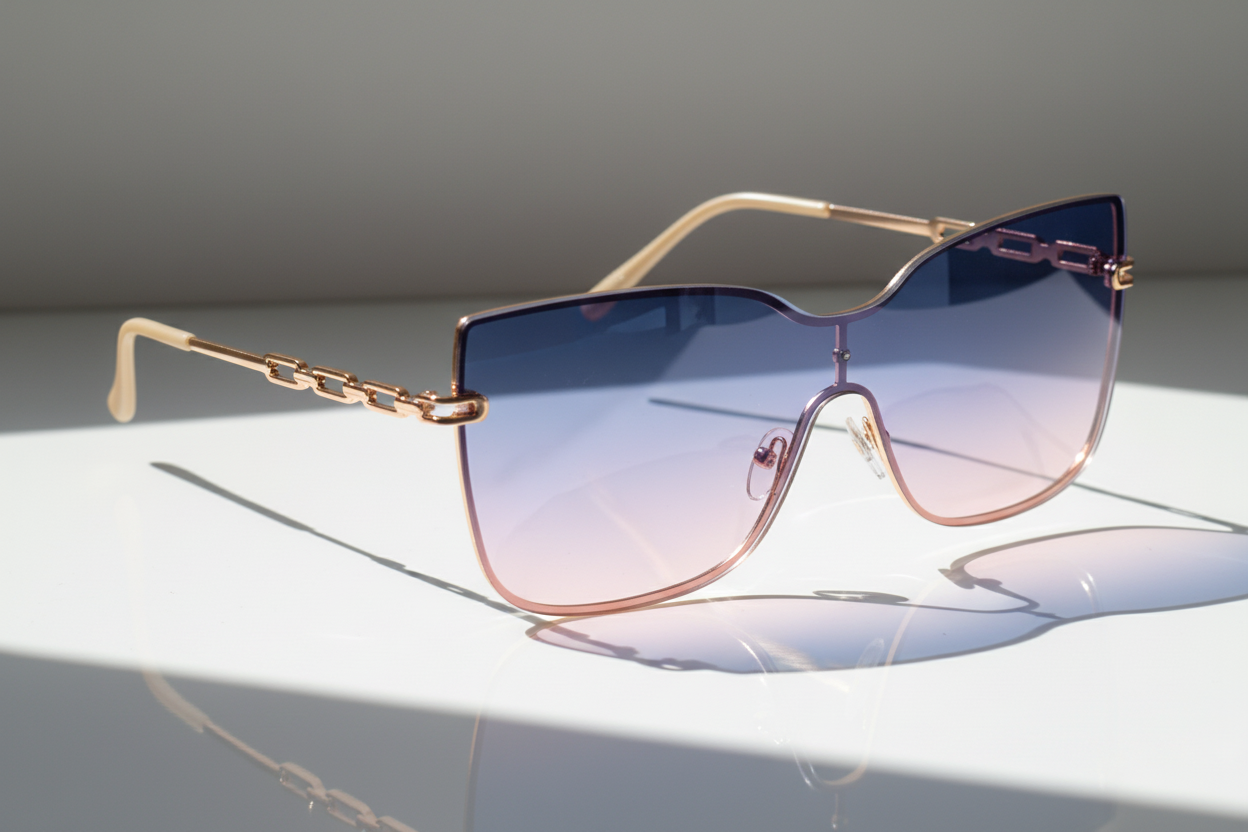 Make a statement this festival season with the EyeLevel Amanda sunglasses. Select from three eye-catching colourways: Silver with grey gradients for timeless elegance, Rose Gold paired with cool blue tones for a modern edge, or Rose Gold with warm brown gradients for versatile style. The oversized frame flatters all face shapes whilst the chain-style arms add a touch of festival flair. Rest assured every pair includes premium UV-filtering lenses that block 100% of harmful UVA/UVB rays, protecting your eyes without compromising on style. Part of our Festival Collection, these quality shades deliver luxury aesthetics at an accessible price point. Dispatched swiftly from our Manchester base, you'll have festival-ready eyewear in your hands without delay.