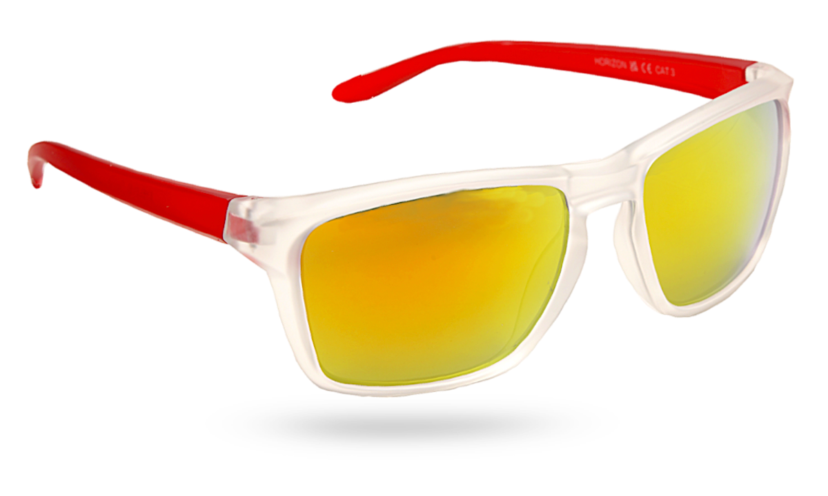 Discover the Horizon sunglasses from EYELEVEL's Festival Collection—your go-to accessory for style and protection. Choose from three striking colour combinations: Matt Clear with Crystal Red or Red Multi-Mirror lenses, Matt Clear with Crystal Grey or Silver Mirror lenses, or Matt Clear with Crystal Blue or Blue Multi-Mirror lenses. Each pair features premium 100% UVA/UVB protection, keeping your eyes safe without compromising on fashion. Crafted with quality in mind and stocked right here in Manchester, these affordable sunglasses deliver festival-ready style that won't break the bank.