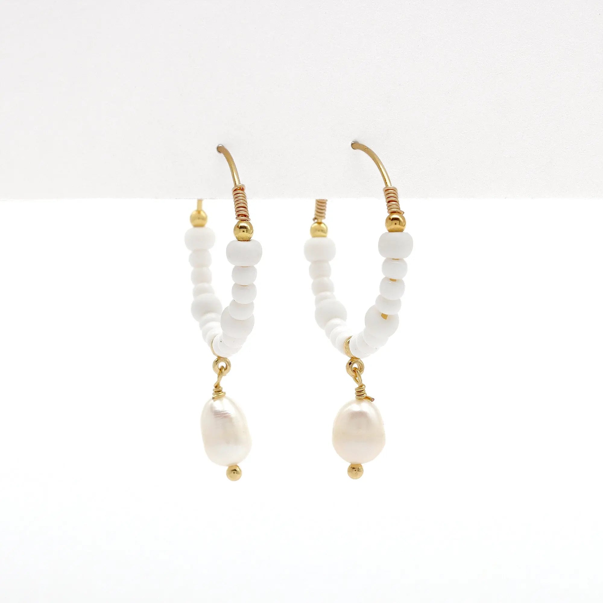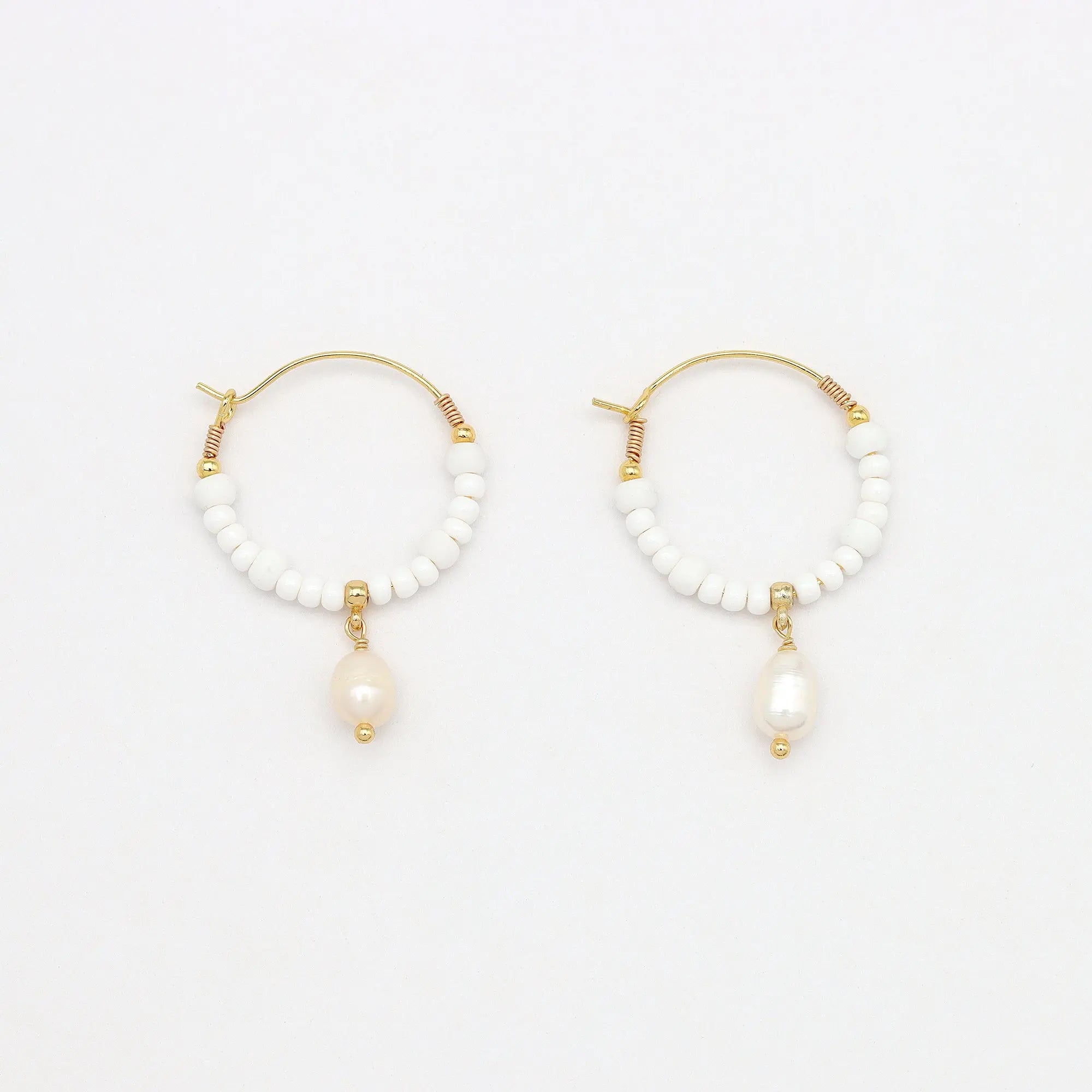 Meet your new go-to hoops: the Gegambar Wire Hoop Earrings! Designed by Giada Legati for Pineapple Island, these medium-sized hoops feature pretty white bead details with a pearl drop charm at the centre. They close securely with a hook, so you can wear them confidently anywhere—whether you're out on an adventure or enjoying a night out. Perfect for all seasons, these earrings will elevate any outfit! Plus, they make the perfect gift for her.