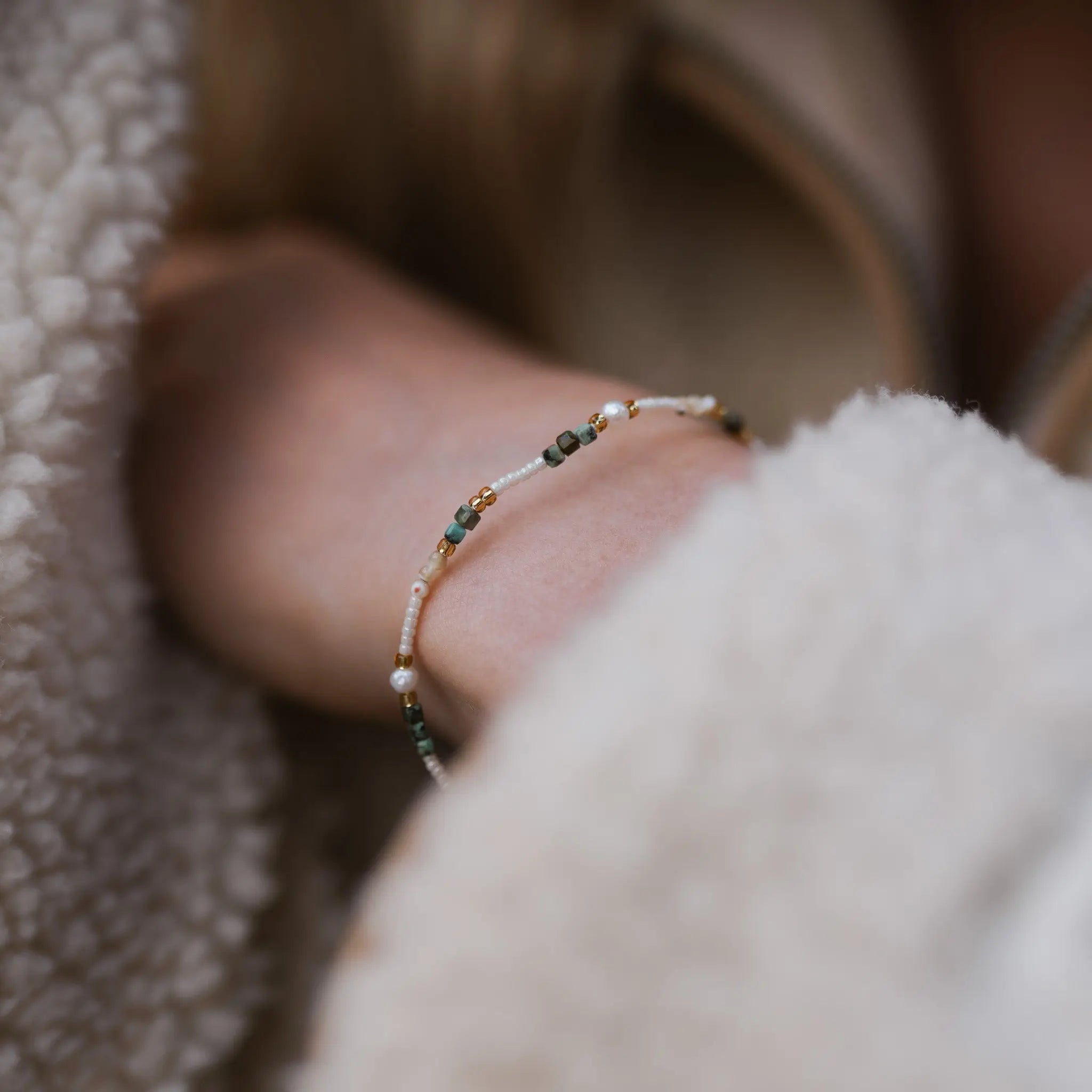 Whether worn on days in the sand or layered with gloves and cosy knits, this bracelet carries a timeless connection to the earth and sea, made to be worn through every season.