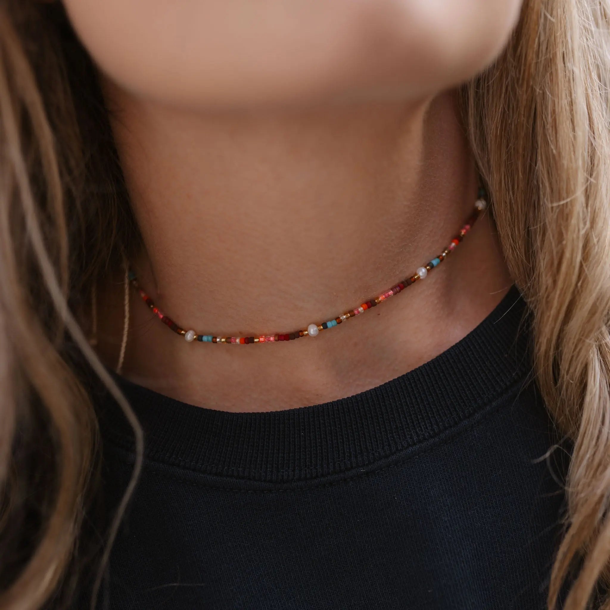 Bold yet effortlessly beachy, the Merah Necklace is all about those sunset-inspired tones. With deep reds, pinks, and browns, balanced by soft peachy hues, pops of turquoise, gold shimmer, and white troca shell beads, it's a little statement with laid-back island energy.