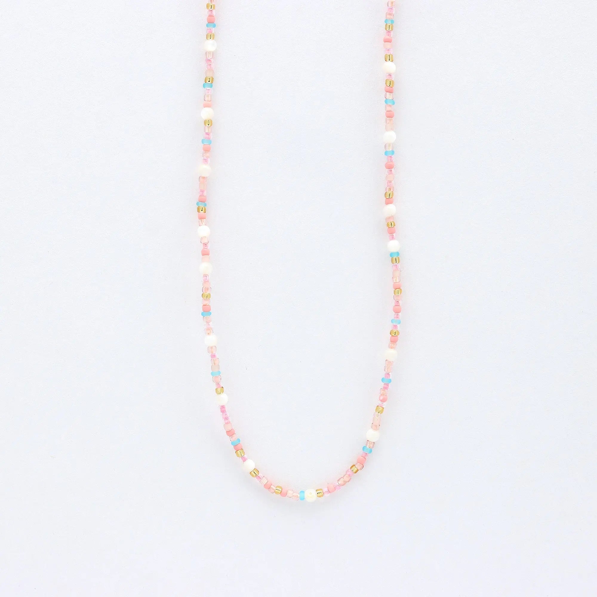 Inspired by sun-filled days, the Surya Necklace - named after the Indonesian word for sun - shines in tones of gold, soft pink, and turquoise, dotted with glowing white troca shell beads. It’s the perfect mix of beachy and boho, made for stacking or wearing solo as your everyday sunshine 🌺✨