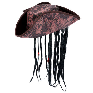 Deluxe Adult Brown Pirate Hat with Dread Locks